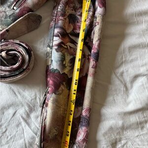Stylish Zara moto faux suede jacket with floral design. Features pink and cream tones. Perfect for a chic look.