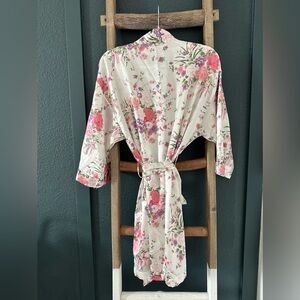 Elegant floral women's robe in a soft cream color, perfect for lounging in style.