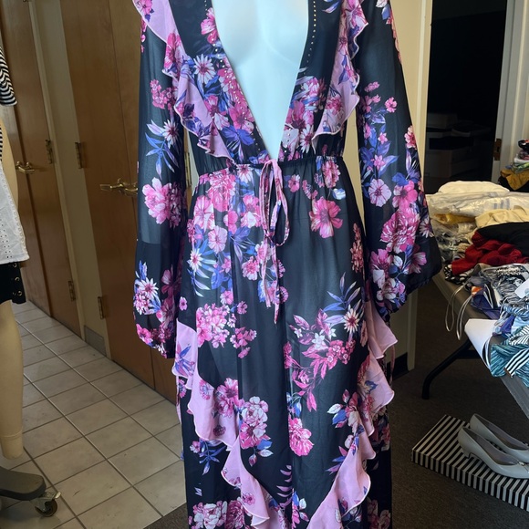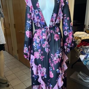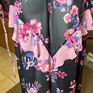 Embrace elegance with this stunning floral robe, featuring a beautiful blend of pink and purple hues. Perfect for lounging in style.