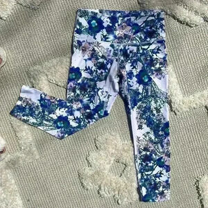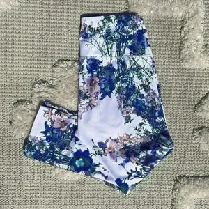 White floral workout leggings. Slight black mark on the right back side as pictured. Super cute!