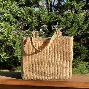 Lined with blue fabric Perfect for carrying a book and snack to the beach