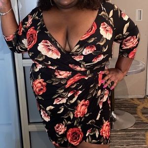 Floral Wrap Dress. Plunge neckline. Sexy occasion dress.
