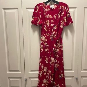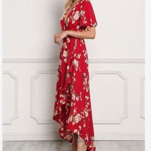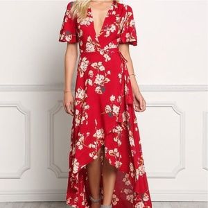 Cute red floral wrap maxi dress. Perfect preloved condition! No tears, holes or stains.