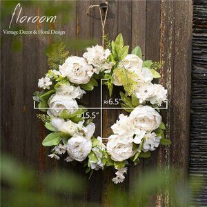 🧿❤️New Design: Floroom Studio's latest design. The 15 inches - 16 inches diameter peony hydrangea wreath is a gorgeous creation. It is handmade with faux silk peony heads, buds, green leaves and several roses.