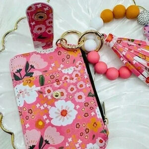 Floral prints in the wallet and wristlet beads are not the same for each card wallet. The prints are randomly placed.