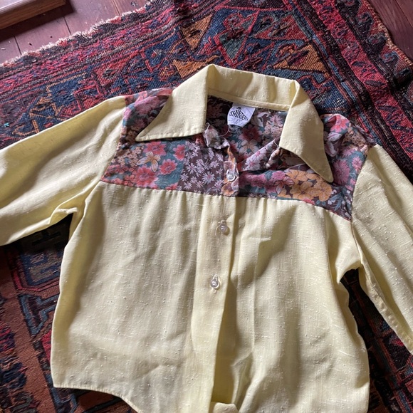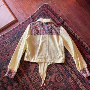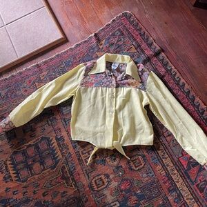 Elevate your style with this amazing vintage 70s pale yellow gauze crop top with print yoke and cuffs. Straight out of Dazed & Confused, Perfect for a casual day out or a special occasion.