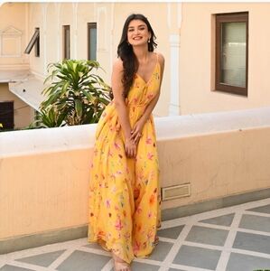 Brighten your wardrobe with this stunning floral yellow jumpsuit. Perfect for any occasion, it offers both style and comfort. Beautiful and flowing. Reposhing because I am too short for it!