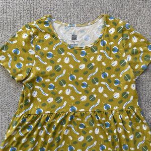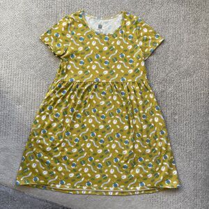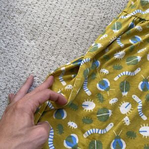 Brighten your wardrobe with this charming yellow midi dress. Featuring a playful floral pattern, it's perfect for any occasion. Organic cotton with insects beetles and caterpillars!