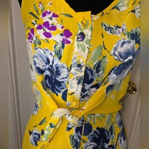 Brighten your wardrobe with this vibrant yellow sleeveless top. Featuring a beautiful floral pattern, it's perfect for any occasion. The cutest tie detail in front. Preloved
