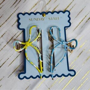 Stylish hair clips in vibrant yellow and blue. Perfect for adding a pop of color.