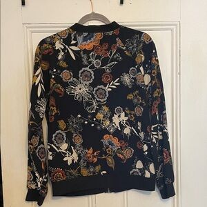 Stylish floral light weight zip-up jacket with vibrant patterns. Perfect for casual outings.