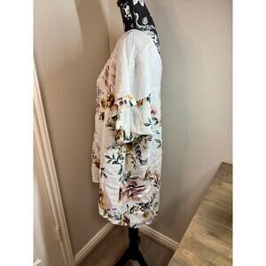 Floral and Beige Open Weave Linen Short Sleeve Top