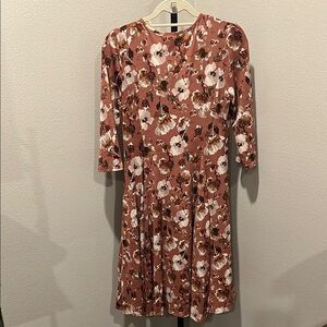 This casual dress features a floral design with a flattering fit and flare silhouette. The v-neckline and 3/4 sleeves add a touch of elegance, making it perfect for everyday wear. Its soft, flowing fabric ensures comfort and style throughout the day.