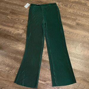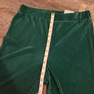 This listing is for a NWT's Floral and Ivy Ribbed Wide Leg Ribbed Pants in size medium, in color green. The pants are pull on, high waist, and wide leg.
