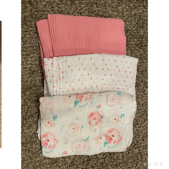 Floral and Polka Dot Muslin Swaddle Baby Blankets