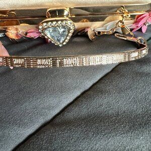 Floral and Rhinestone Clutch in Champagne Pink & Rose Gold