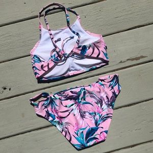 Tropical print bikini, only worn once! Will be washed before it is shipped out. Bottoms are a size small, top is a size medium but can be adjusted!