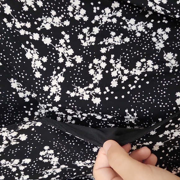Floral black/white print Long sleeve smocked back Faux wrap small Date Concert