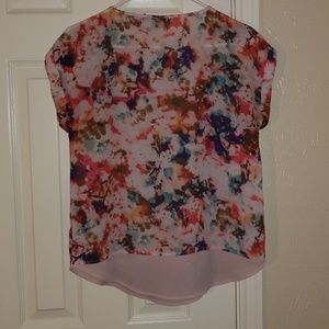 Loose fit floral blouse. Polyester . Xs but it is loose so can fit up to a medium.