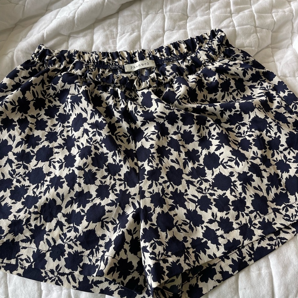 Gently used in good condition from Nordstrom floral navy blue cream floral print stretchy skorts