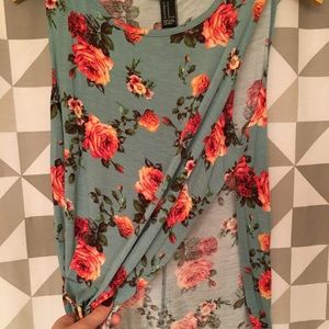 Floral blue side split tank top, medium, never worn
