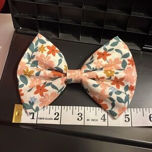 4” x 5” on alligator clip for versatility as a hairbow or as a bow tie