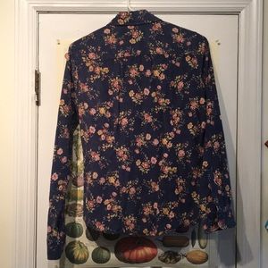 Lightweight navy corduroy button down with light pink flowers.