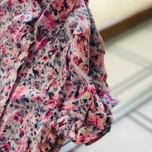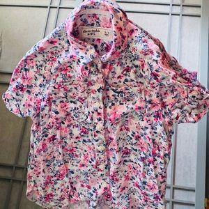 Cute comfy, soft, girls button down shirt in excellent condition (rarely worn) no stains either! The florals just pop in the sunlight cute for any occasion I especially love the tiny details on the shoulders and little front pocket!