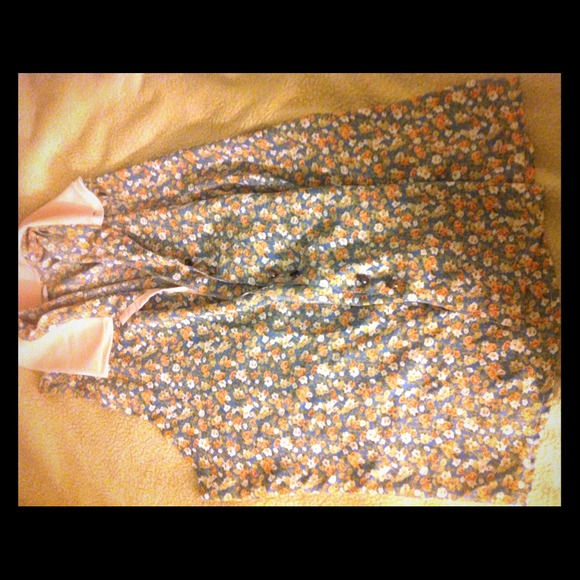 Pink collared floral chiffon button up. Super cute with high waisted shorts. It is free sized, and a small rip on the under arms but its not noticeable 👍😊