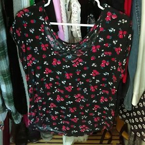 Flowy floral cross back t shirt. Brest pocket ripped.