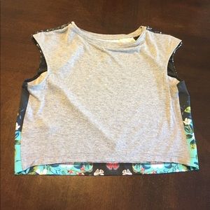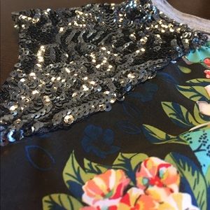 This beautiful crop top has a floral design with sequence cap sleeves. Only worn a couple times.