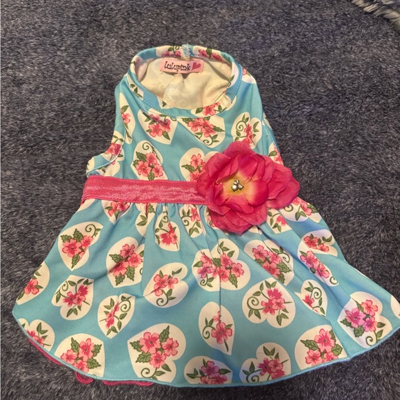 Floral dress tor dogs Pink/teal blue/ and floral Size small Lightly used.