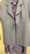 Purple floral dress with pin tucks for form fit. Inside dress is a tank style sleeve and outer shell is also a form fit jacket with satin tie in front.