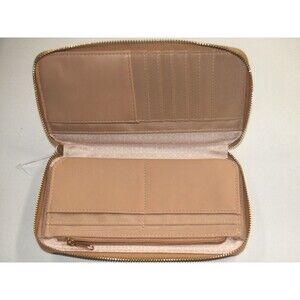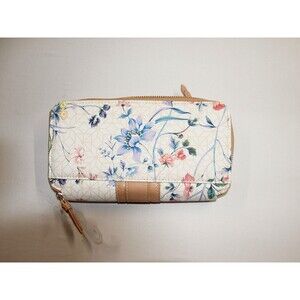 Floral faux leather Tan Large Zip Around Wallet many compartments NEW