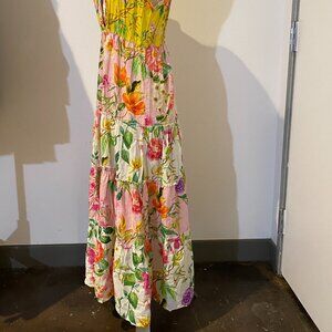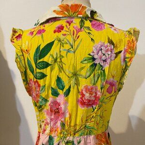 Floral flower collared button up ruffle sleeve Maxi Tea party dress