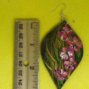 These fabulous hand painted floral earrings are made of genuine leather and truly make a statement. They measure 3 inches in length and the earring wires are hypoallergenic for those with metal sensitivity.