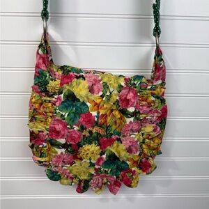 Floral & green polka dot cloth crossbody handmade purse. One size.