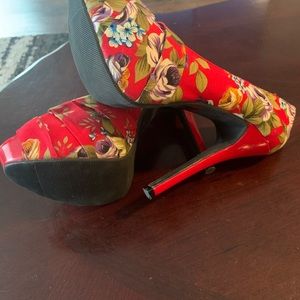 Gently used red floral heels. Size 5 1/2 made by Charming Charlie