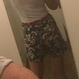 Vintage blue, red, yellow, & green floral high-waisted shorts. Perfect for the fun lifestyle!