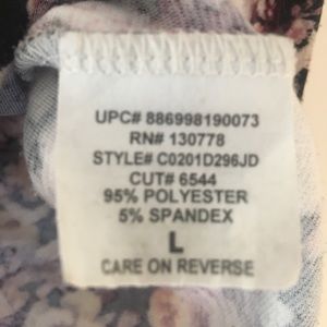 Floral print in hues of purple/pink/indigo. Form fitting and soft material