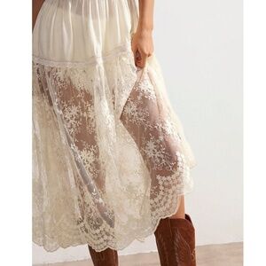 Floral lace Pockets Semi sheer Ruffle hem Stretchy waist 100% poly S=2/4 M