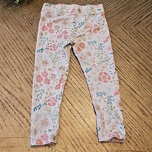 Tommy Bahama girls floral leggings, pretty glitter and best part glitter doesn't shed! Size tag has come off but measurements are 3-4T