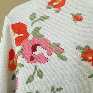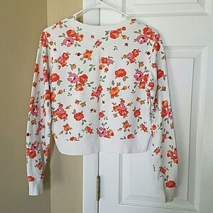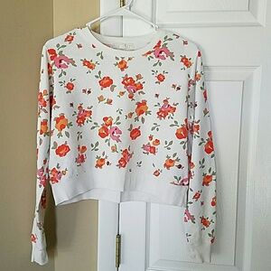 Long sleeve thin sweatshirt. Shirt waist, white with pink, orange flowers. From Forever 21.