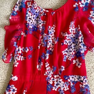 Floor length lined dress only worn once. Zipper back, flouncy short sleeves