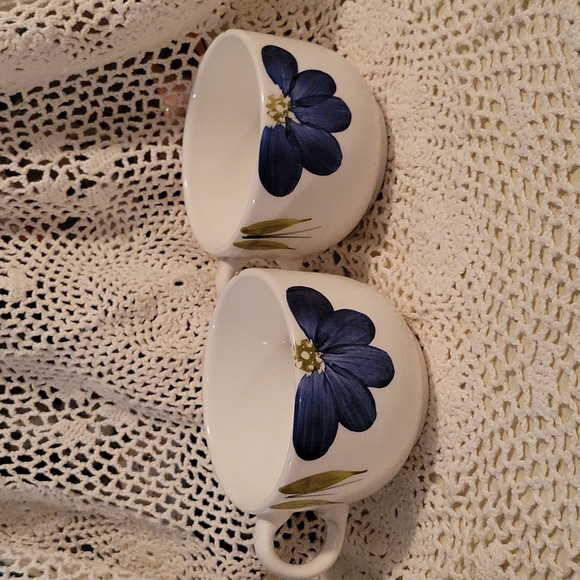 gorgeous white ceramic mug with beautiful blue and yellow Daisy type flowers~ no cracks chips or defects~ never used~ mint condition🌸 only sold together