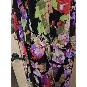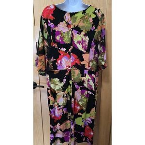 Floral multi color Print V-Neck mock wrap Dress By London Times Woman 18W
