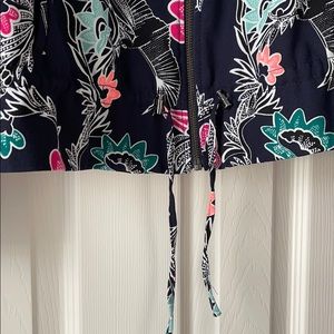 Floral medium weight navy jacket with zipper, side pockets and gathered waist line (adjustable)