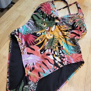 Floral one piece bathing suit racer back straps size 10 14“ pit to pit