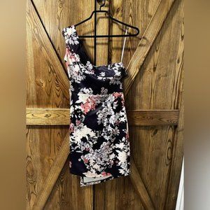 A one shoulder dress with a floral pattern perfect for weddings and special occasions this dress is best paired with some classic Black heels and a matching clutch.