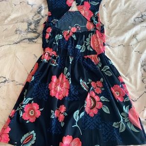 Francesca’s floral open back navy dress with a lined skirt. Size Small.